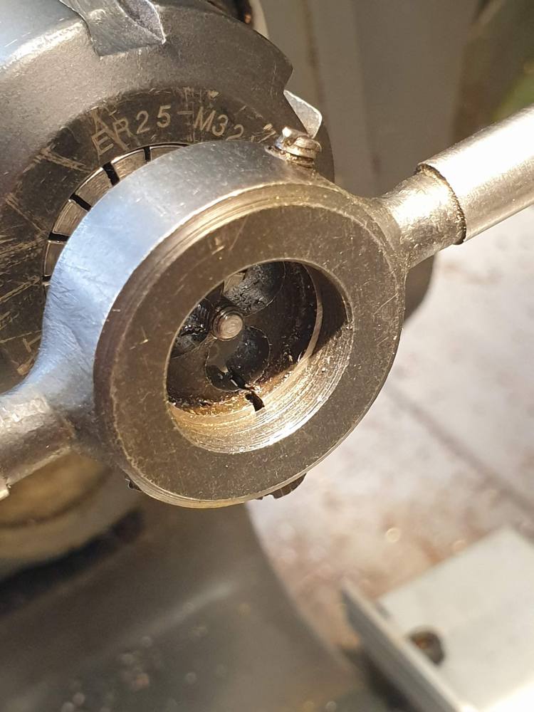 Then its a case of squaring up your die against the tailstock to ensure that you cut the thread squarely. You can also get tailstock die holders which make this process easier, but I’ve not got one… yet!