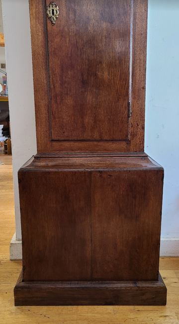 This is a 30 hour, count wheel striking clock with a brass dial and silvered chapter ring. Made approximately 1750, this is a nice example of a country clock with a singe hand showing the hour.