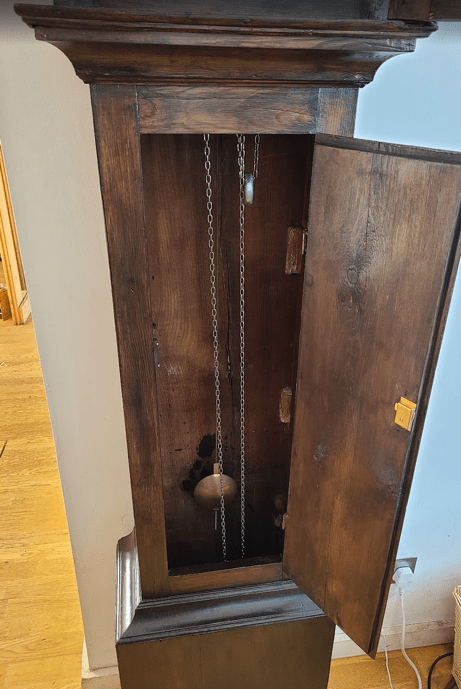 The clock has been fully serviced and the case restoration is featured in a recent blog.